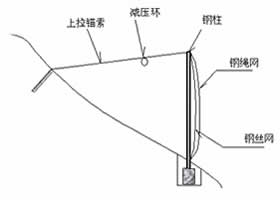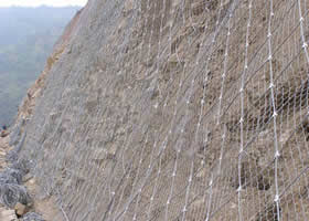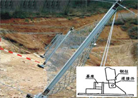 多设在边坡上,在落石滚动的过程中进行拦截,消能环的设置可以使结构在受到落石撞击时增强变形能力同时延长撞击作用时间而释放落石能量。最终达到使落石静止的目的。也可以设置在公路边坡坡脚处来防治落石,以菱形网和钢丝绳结合应用的方法进行防护。 |