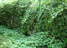 自然生态工法是利用镀10%铝锌金属网固定滚石,使植物基材稳定的同时,特殊肥料袋能提供长期肥效,所以在岩盘、山崖等无土壤的边坡上实现植生生长,达到自然景观效果。 |