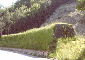 此种防护形式应用之处施工面一般较大,通常采用绿格加筋防护结构以降低造价,此种柔性结构在落石撞击时可延长作用时间从而有效减少撞击力,保证结构的安全运行。 |